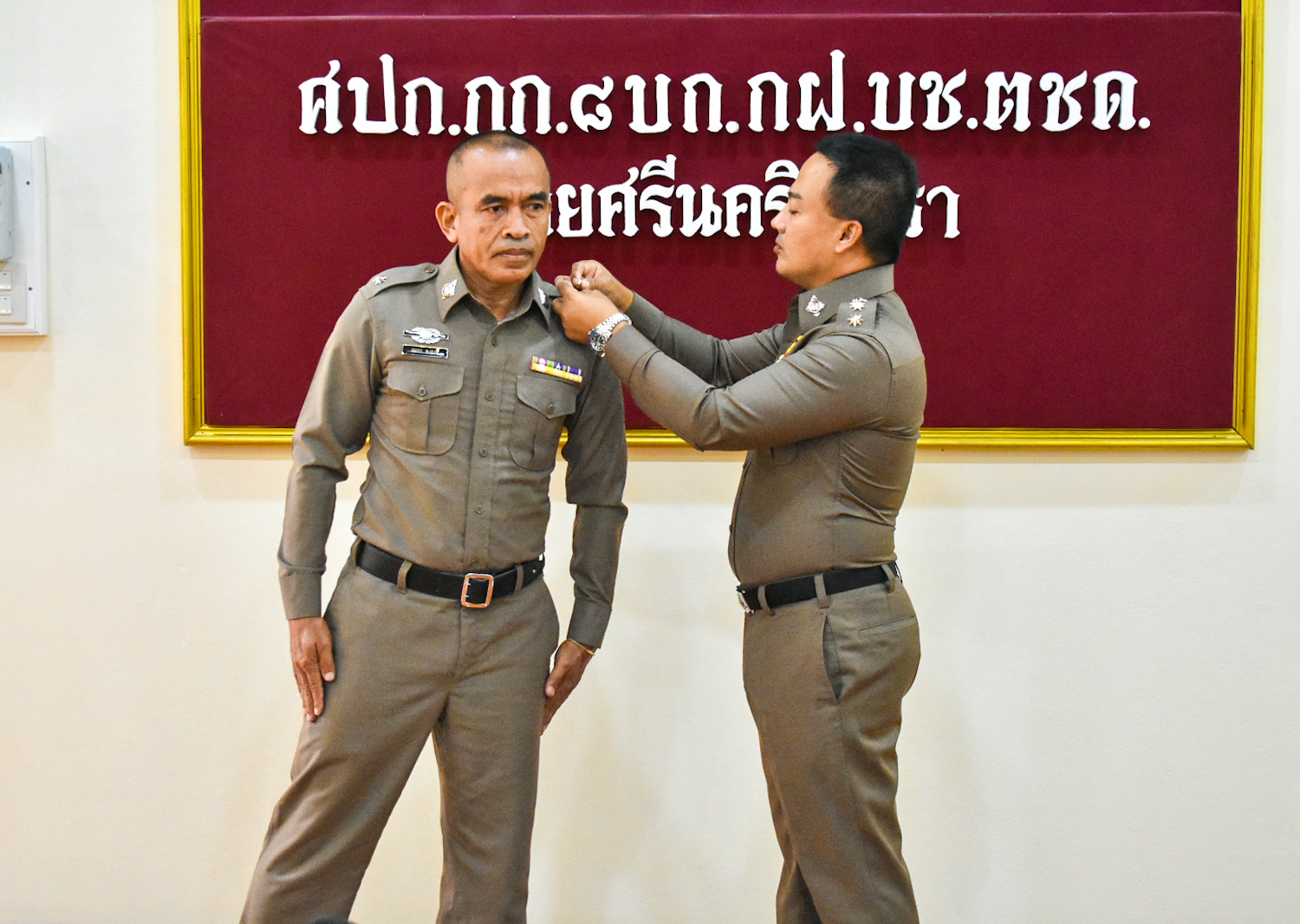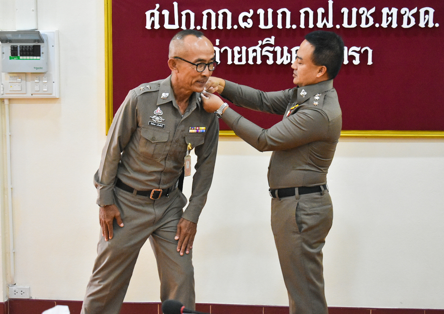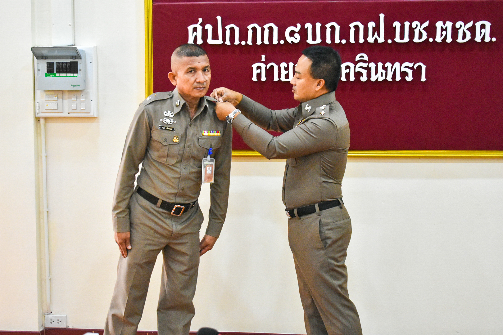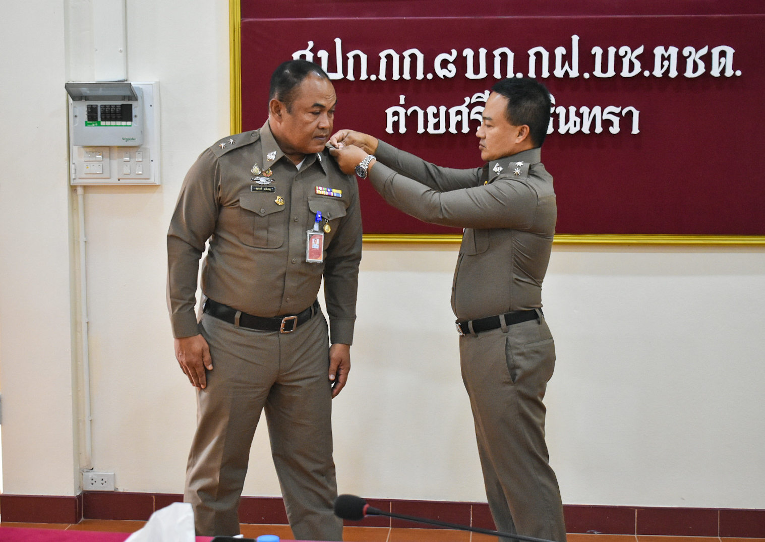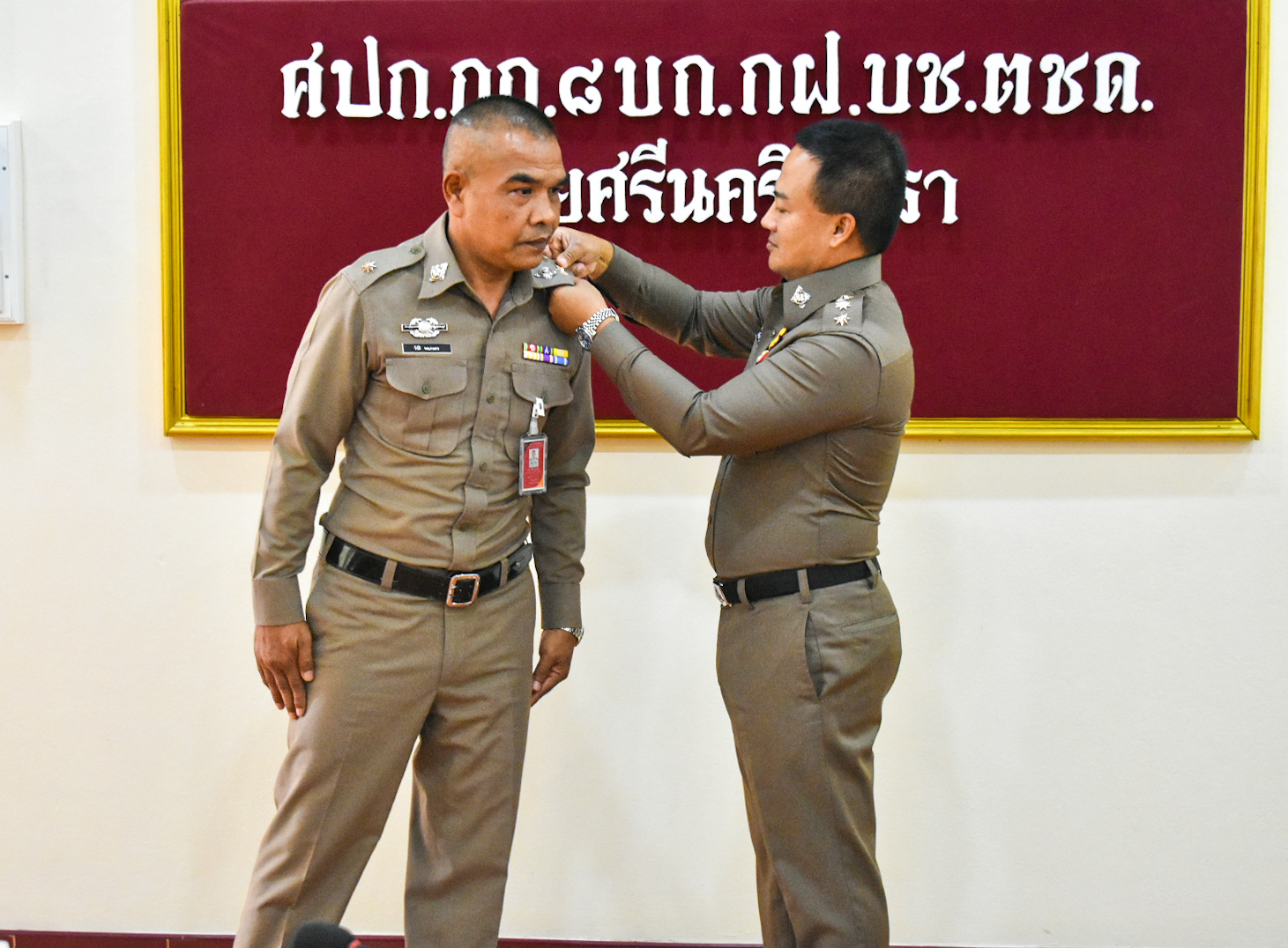 พ.ต.อ.ธวัลธรณ์ พุฒิธนพิศุทธิ์ ผกก.บช.ตชด.รรท.ผกก.๘ บก.กฝ.บช.ตชด. เป็นประธานในพิธีประดับยศและให้โอวาทข้าราชการตำรวจชั้นสัญญาบัตร จำนวน ๕ ราย ณ ห้องประชุม กก.๘ บก.กฝ.บช.ตชด.