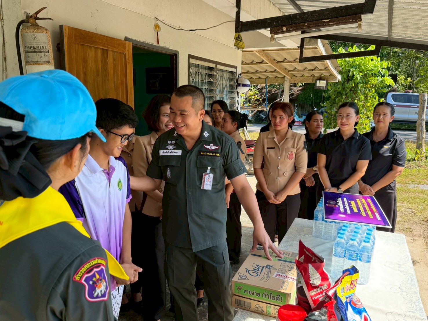 ว่าที่ พ.ต.อ.จักรพันธ์ พยับไชยกุล ผกก.๘ บก.กฝ.บช.ตชด. , พ.ต.ท.พิทักษ์ ใจสมุทร ,พ.ต.ท.หญิงดวงเดือน ขุนทอง รอง ผกก.๘ บก.กฝ.บช.ตชด.พร้อมด้วยคุณ สุนีย์ ใจสมุทร ประธานชมรมแม่บ้านตำรวจ กก.๘ บก.กฝ.บช.ตชด. และ สว.ฯ/ผบ.ร้อย และคณะแม่บ้านตำรวจ กก.๘ บก.กฝ.บช.ตชด. เยี่ยมข้าราชการตำรวจที่ทุพพลภาพ จากการปฏิบัติหน้าที่ ตาม โครงการ "ครอบครัวตำรวจ เราไม่ทิ้งกัน" จำนวน ๓...
