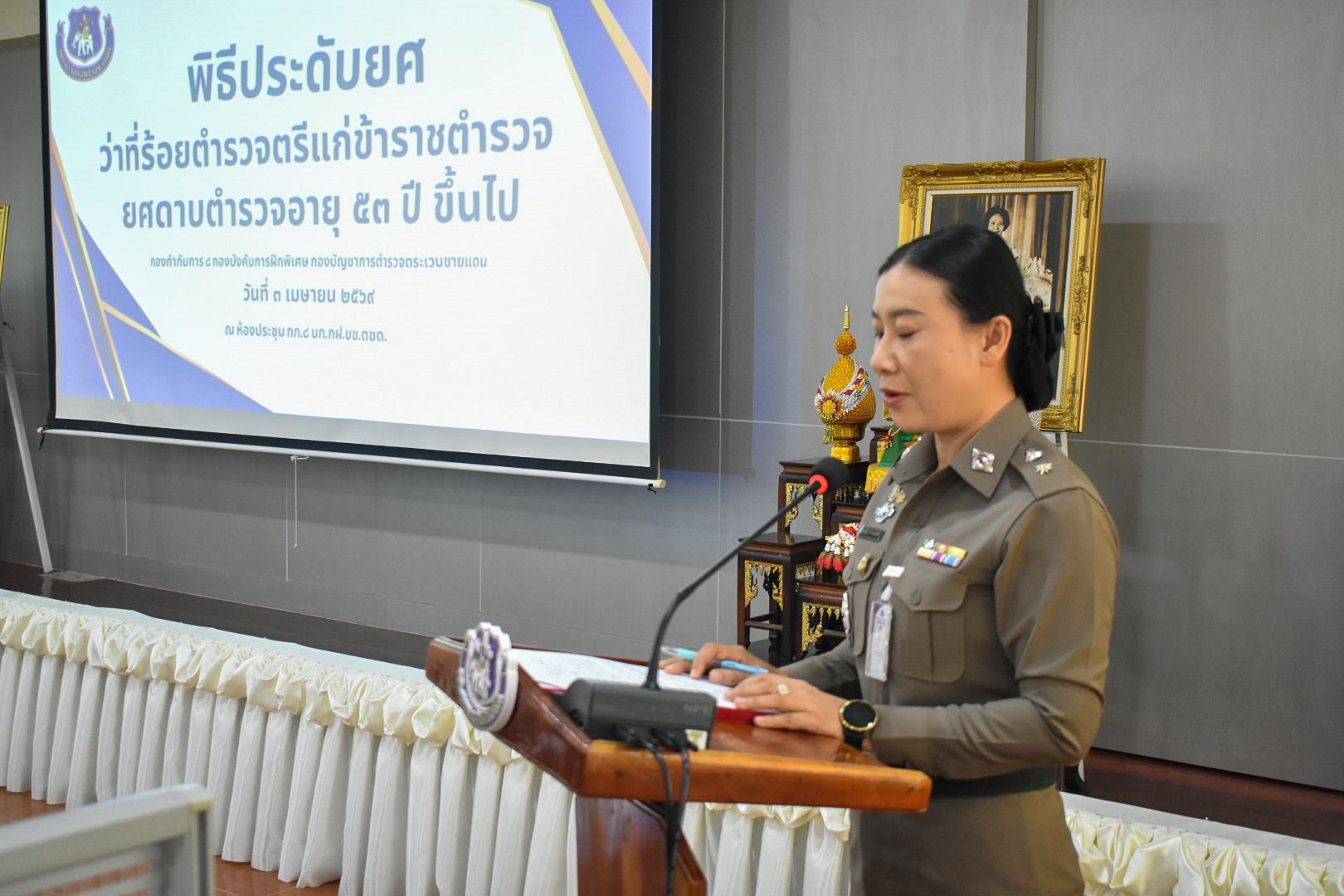 Read moreวันที่ ๓ เม.ย.๖๙ ว่าที่ พ.ต.อ.จักรพันธ์ พยับไชยกุล ผกก.๘ บก.กฝ.บช.ตชด. ประดับยศให้กับข้าราชการตำรวจชั้นประทวนยศ ด.ต. อายุ ๕๓ ปีขึ้นไป เพื่อเลื่อนตำแหน่งและเลื่อนยศแบบเลื่อนไหลเป็นชั้นสัญญาบัตรถึงยศ ร.ต.อ. จำนวน ๓ นาย ณ ห้องประชุม กก.๘ บก.กฝ.บช.ตชด.